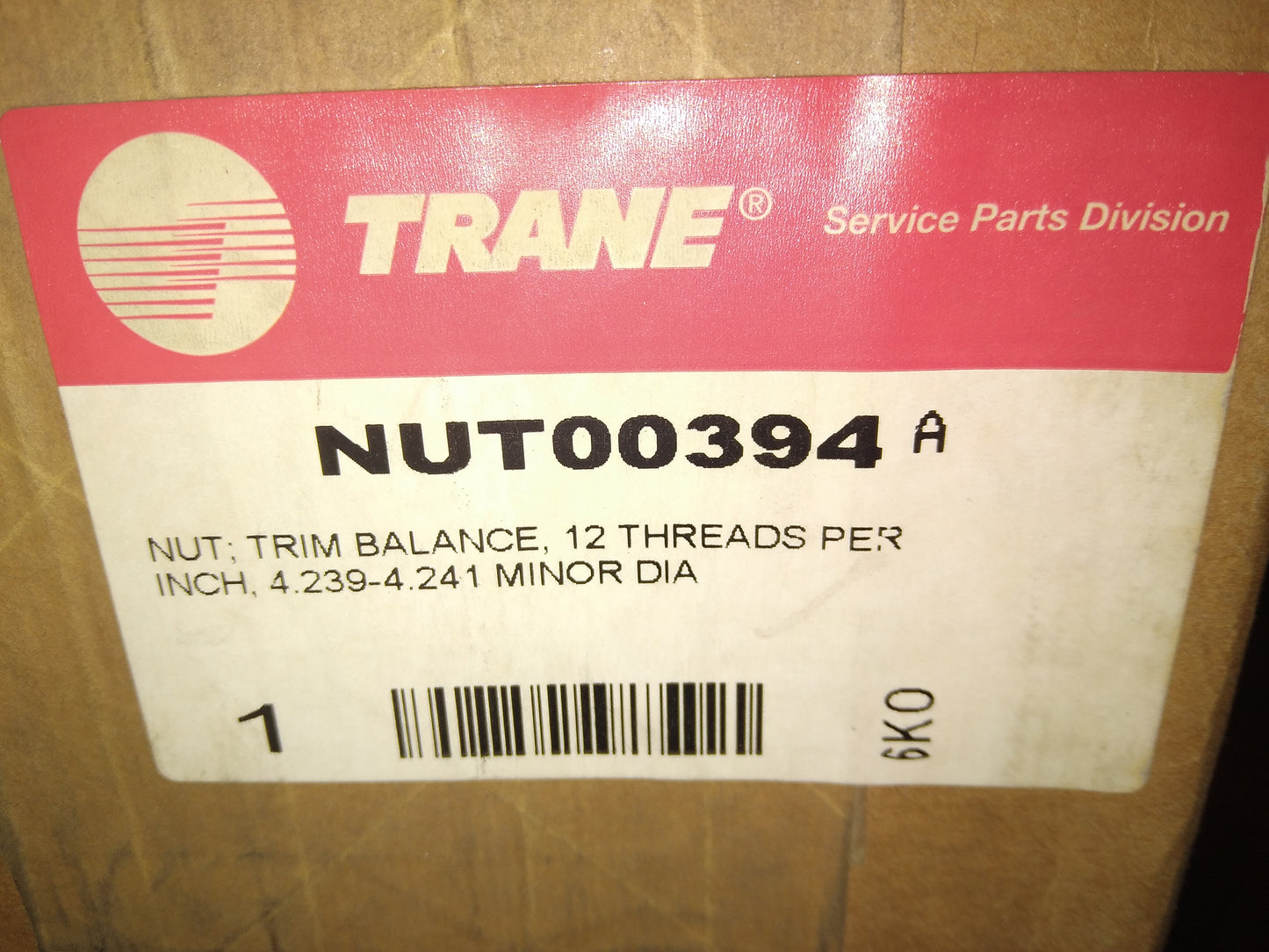 TRIM BALANCE NUT, 12 THREADS PER INCH, 4.239-4.241 MINOR DIA, OVERALL DIMS:1-1/2"H X 5-11/16"W, WEIGHT:3LBS 4OZ, ORIGIN:USA, IN MFG BOX.