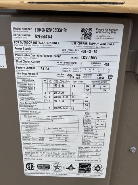 • 4 Ton Convertible Gas/Electric Package Unit 460/60/3 Seer 13 R-410A